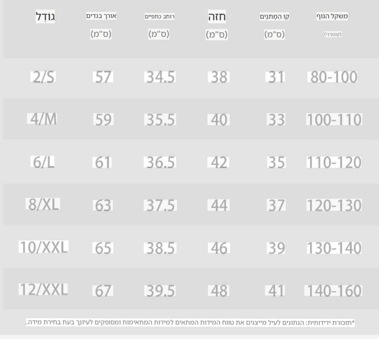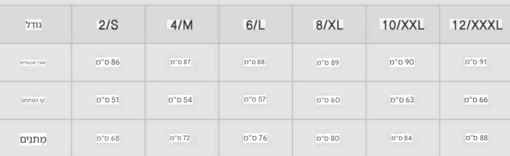 • נא לוודא מידה מתאימה בטבלת מידות טרם הזמנה •